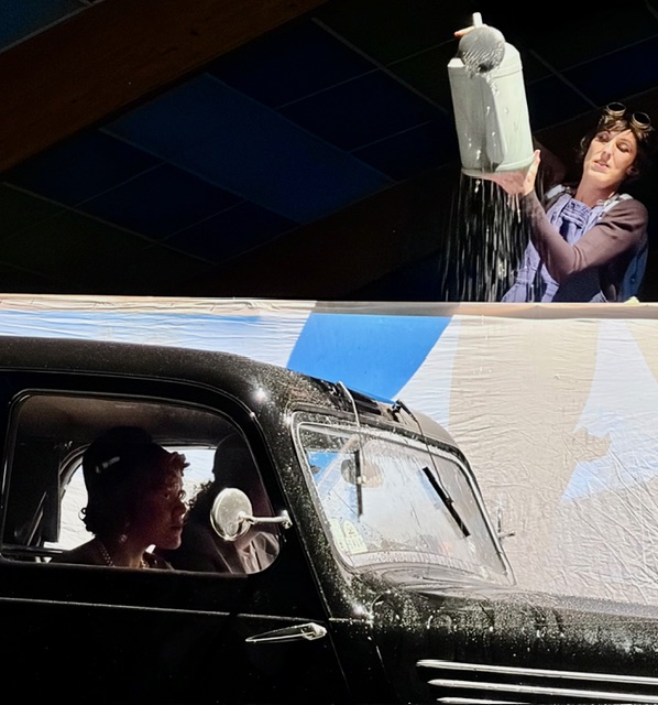 Mon rôle consistait à rouler « pour de faux », pendant qu’on me versait un arrosoir sur le pare-brise pour faire croire qu’il pleut des cordes, avec à mon bord la jolie Kate et le gars Nicky qui lui fait le coup de la panne (le petit coquin), au cours d’une scène burlesque et humoristique.
