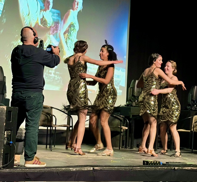 L’idée est de réaliser un film en direct devant le public sur le thème des années folles avec trucages et vidéos projecteurs.